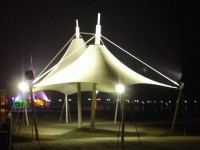 張拉膜是用于膜結(jié)構(gòu)中的膜材,是一種具有高強(qiáng)度、柔韌性好的薄膜材料;是由織物基材(玻璃纖維、聚酯長(zhǎng)絲)和涂層(PTFE、硅酮、PVC)復(fù)合而成的涂層織物。其主要材料就是高強(qiáng)度織物纖維。