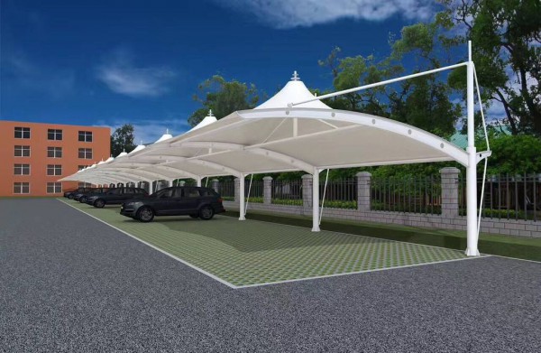 膜結(jié)構停車棚因其自重輕,具有良好的受力特點,所以成為大跨度空間結(jié)構的主要形式之一。停車場的規(guī)劃和建設成為現(xiàn)代城市規(guī)劃的重要組成部分,在以后的建設里會變得越來越重要。膜結(jié)構輕巧、別致的造型在停車場及候車廳的建設中擔當了重要角色,除了滿足防風雨、防日曬等基本功能外,并有較好的標識招攬效果,展現(xiàn)了人們個性化的一面。